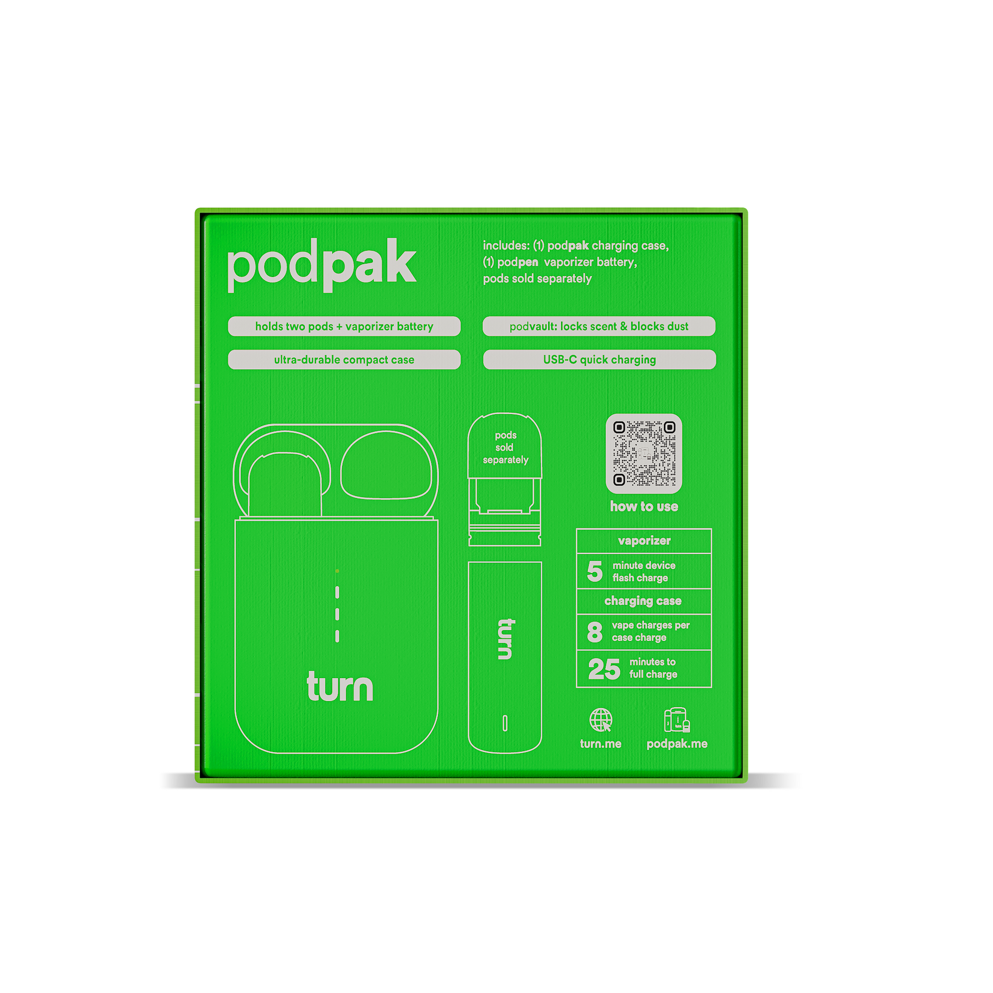 Double up on everything you love about vaping with the turn podpak battery case. With space for your podpen (included), main flavor pod + a backup pod, you’ll always be ready to rip.